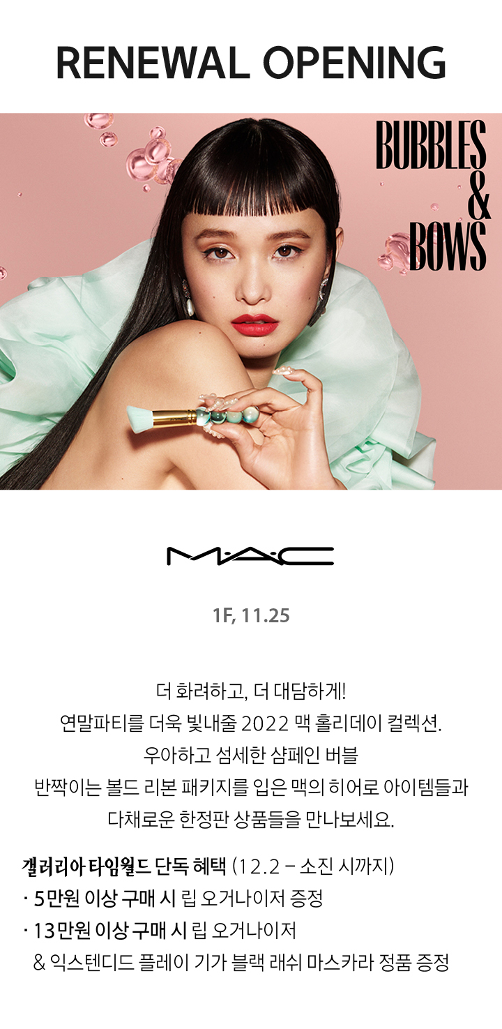 상품행사 [RENEWAL OPENING] MAC 11.25, 1F 페이스북에 공유하기 카카오스토리로 공유하기 PREV 목록 NEXT 설 선물세트 예약 판매는 아래 번호로 문의 부탁드립니다. 타임월드 042.480.5587 확인