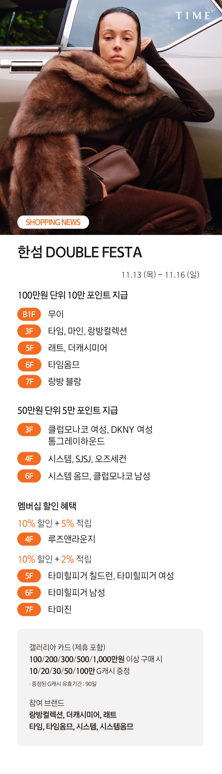 상품행사 쇼핑은 GALLERIA! B1F/3F/4F/5F/6F/7F 페이스북에 공유하기 카카오스토리로 공유하기 PREV 목록 NEXT 설 선물세트 예약 판매는 아래 번호로 문의 부탁드립니다. 타임월드 042.480.5587 확인