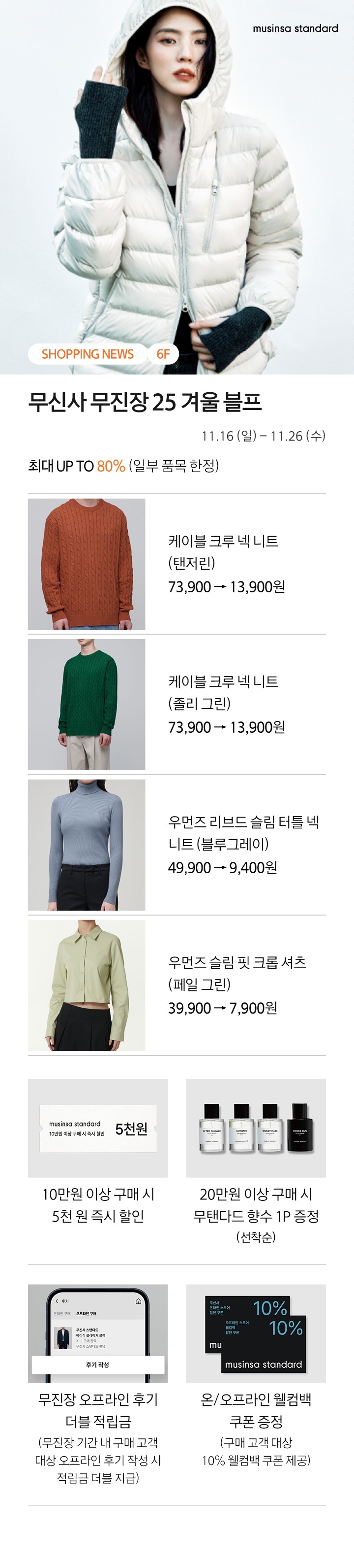 상품행사 무신사 무진장 25 겨울 블프 6F 페이스북에 공유하기 카카오스토리로 공유하기 PREV 목록 NEXT 설 선물세트 예약 판매는 아래 번호로 문의 부탁드립니다. 타임월드 042.480.5587 확인