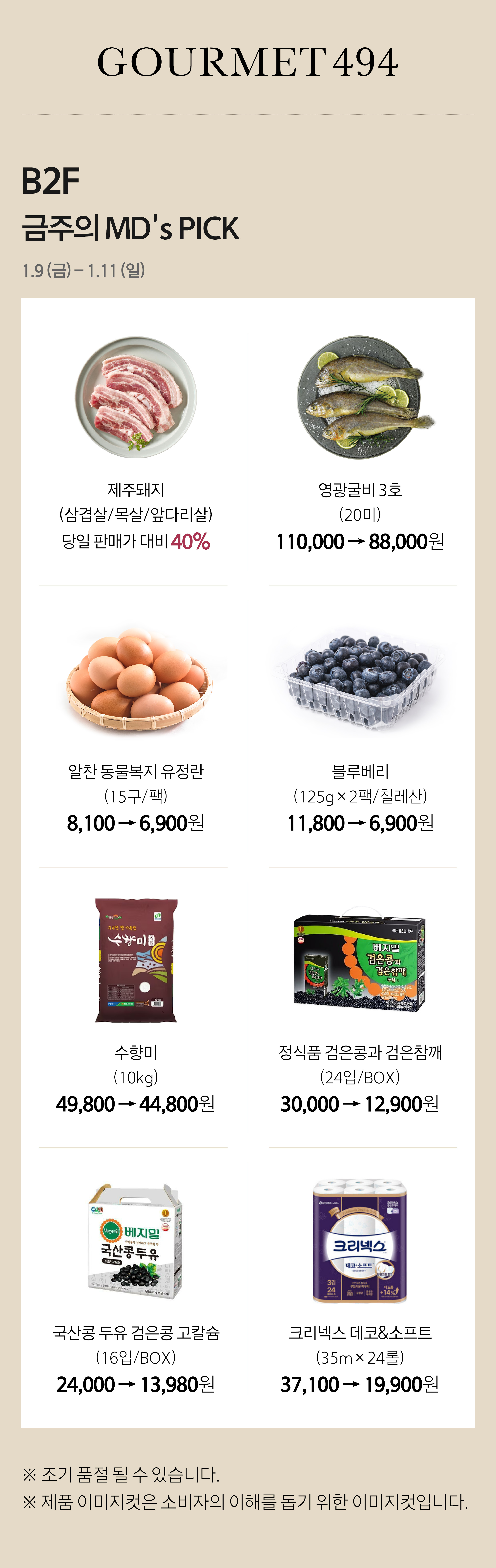 상품행사 GOURMET 494 금주의 MD's PICK 1.9 - 1.11, B2F GOURMET 494 페이스북에 공유하기 카카오스토리로 공유하기 PREV 목록 NEXT 설 선물세트 예약 판매는 아래 번호로 문의 부탁드립니다. 타임월드 042.480.5587 확인