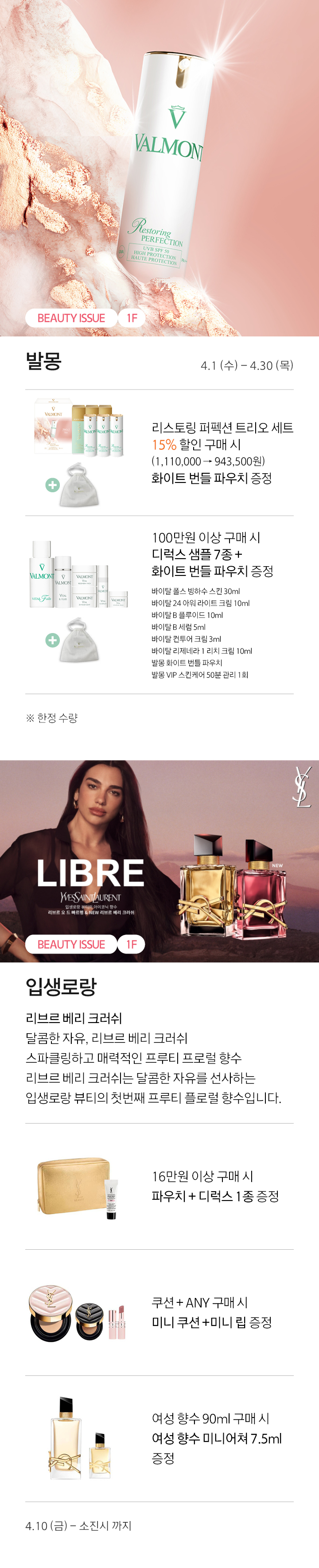 상품행사 BEAUTY ISSUE 1F 페이스북에 공유하기 카카오스토리로 공유하기 PREV 목록 NEXT 설 선물세트 예약 판매는 아래 번호로 문의 부탁드립니다. 타임월드 042.480.5587 확인