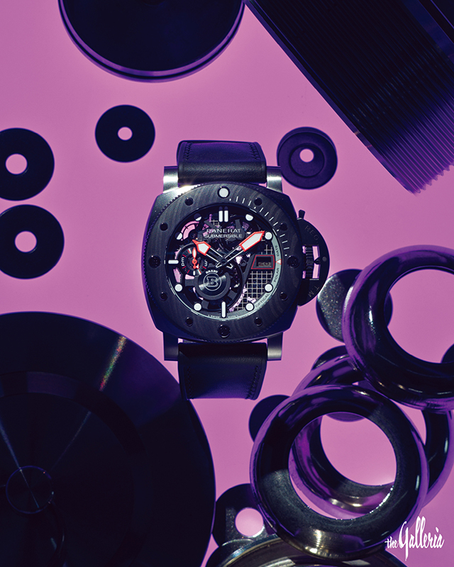 PANERAI 직경 47mm의 에코티타늄™ 케이스에 칼리버 P.4001/S를 장착해 시, 분, 날짜, 스몰 세컨드, 파워 리저브, 세컨드 타임존 등을 확인할 수 있는 섭머저블 S 브라부스.