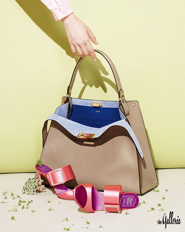 FENDI 클래식한 가죽 외관에 생동감 있는 컬러 스웨이드 안감을 매치한 펜디 웨이 백. ROGER VIVIER 크리스털 버클 장식이 돋보이는 더블 스트랩 새틴 뮬.