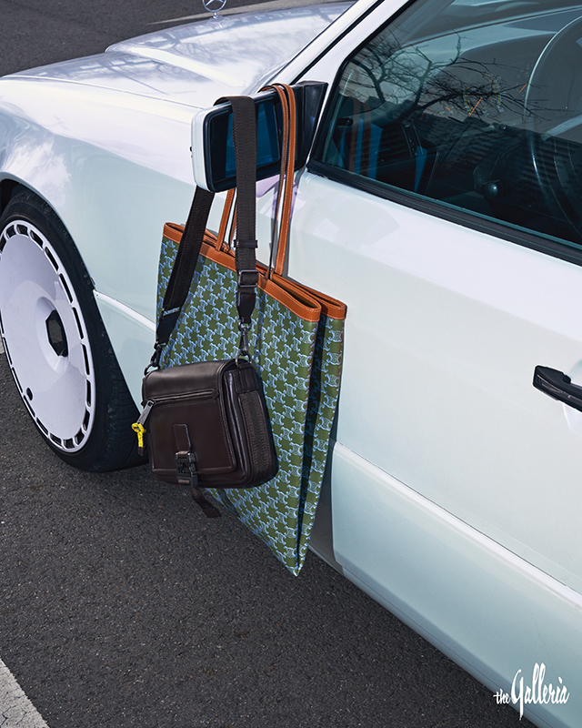 새 시즌의 가방과 세월의 흔적이 묻어나는 클래식 카의 이색적인 만남.